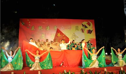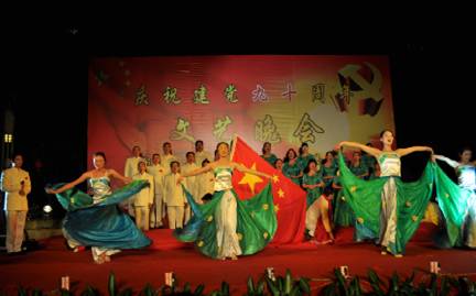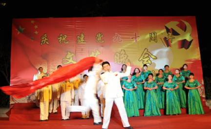 6月28日晚,我办与成都招商分局参加了由四川省省直机关事务管理局主办的庆祝中国共产党成立90周年文艺晚会。省直机关工委、省直机关事务管理局的领导以及管理局系统所属21家单位部分干部职工现场观看,数百名演职人员参加了演出。晚会以舞蹈、合唱等多样舞台形式,展现中国共产党90年的光辉历程,讴歌我党的丰功伟绩和中华民族伟大复兴的奋斗历程,追寻革命先烈光辉的革命足迹,祝愿我们的党永葆青春!