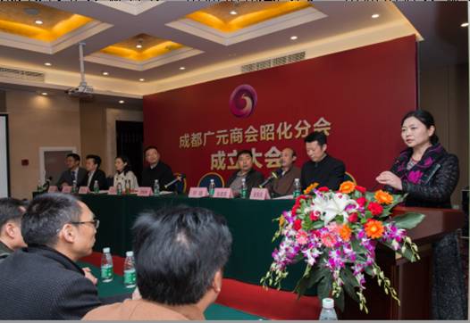 常晓梅代表广元市人民政府驻成都办事处向昭化分会的成立表示了祝贺。她强调指出,成都广元商会昭化分会是成都广元商会成立四年来成立的第四个分会。昭化分会的成立,不仅壮大了广元商会的队伍,优化了组织结构,整合了昭化籍外出创业人员的人脉资源,给昭化在蓉的父老乡亲们搭建了一个诉乡情的平台,谋发展的舞台,更是广元县级区在成都建商会实现了零的突破。她希望昭化商会的会员企业弘扬“昭德崇文,化新图强”的昭化人精神,尊纪守法,诚信敬业,用崇高的精神境界塑昭化人民良好的形象。要求昭化分会的班子成员要当好昭化区和昭化会员企业的宣传员、信息员、推介员和服务员,想他们之所想,精诚团结促和谐;急他们之所急,相互帮助和温暖;忧他们所忧,献计献策谋发展。用不屈的精神,求实的作风,共同创造昭化人民在成都的一片蓝天,为昭化的社会发展、经济进步做出贡献。