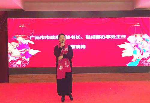 1月10日下午,成都广元商会昭化分会组织召开2016新春团拜会暨昭化区农民工工作站2016年度工作总结会。市政府副秘书长、驻蓉办主任、市投促局成都分局长常晓梅受邀参加会议。广元市昭化区政协副主席、工商联主席夏敏,市投促局成都分局、成都广元商会、成都昭化商会,昭化区人社局、投促局以及在蓉昭化区籍农民工代表共160余人参加会议。