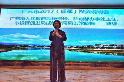 9月28日,市驻蓉办在成都金域名人国际酒店隆重举行广元2017(成都)投资说明会。会议由市驻蓉办副主任杨旭主持,市政府副秘书长、市政府驻蓉办主任、市投促局成都分局局长常晓梅致辞,市政府驻蓉办副主任滕显利对广元重点发展产业、优势资源及重点项目做推介。近300人参加活动。