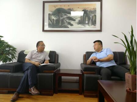 (图为:刘东虎与广元市文旅集团党委委员、纪委书记陈勇对接广元重点景区信息并探讨合作模式)