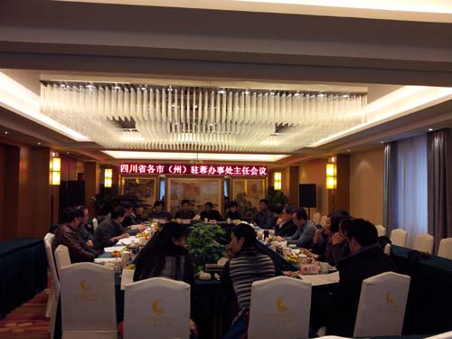 2012年12月25日下午,四川省各市(州)驻蓉办事处联谊工作会在广元市人民政府驻成都办事处六楼会议室召开,会议由各市(州)驻蓉办事处联谊会会长刘传政主持。全省各市(州)驻成都办事处主任和省直机关事务管理局后勤改革与综合管理处(市、州驻蓉办事处管理处)全体职工参加了会议。