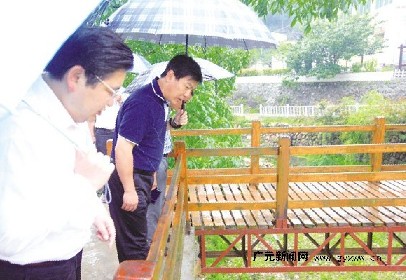 罗强一行冒雨来到竹园镇、白家乡松盖村、马鹿乡砂石村、关庄镇等,对防汛抗灾和地质灾害防治进行了深入检查。看到县、乡镇、村组防灾救灾应急预案已经启动、干部24小时值班,罗强给予了肯定。
