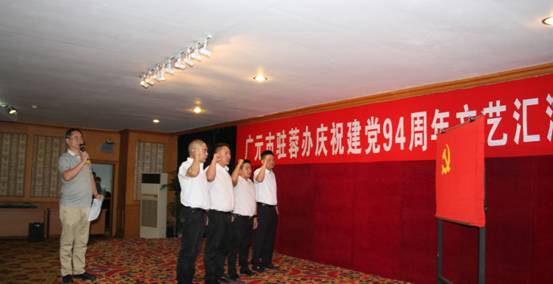 活动中,广元驻蓉办事处副主任杨旭宣读了《广元市人民政府驻成都办事处关于表扬优秀基层党组织、优秀共产党员和先进党务工作者的通知》;驻蓉办副主任、中共广元驻蓉流动党员委员会书记徐涛就开展庆祝建党94周年活动的目的、意义及党的历史背景作了讲话;中共广元驻蓉流动党员委员会专职副书记周斌与与会全体党员重温入党誓词暨新党员入党宣誓。