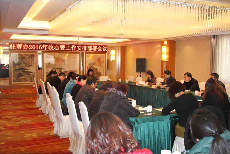 近日,市政府副秘书长、驻蓉办主任常晓梅主持召开我办春节节后收心暨2016年度工作安排部署会议。副主任杨旭、徐涛、滕显利及我办全体职工参加会议。会议听取了各分管副主任对2016年度工作的安排意见,常晓梅副秘书长在讲话中代表驻蓉办领导班子向全体干部职工致以新春的祝福,并对2016年度工作提出了具体要求。