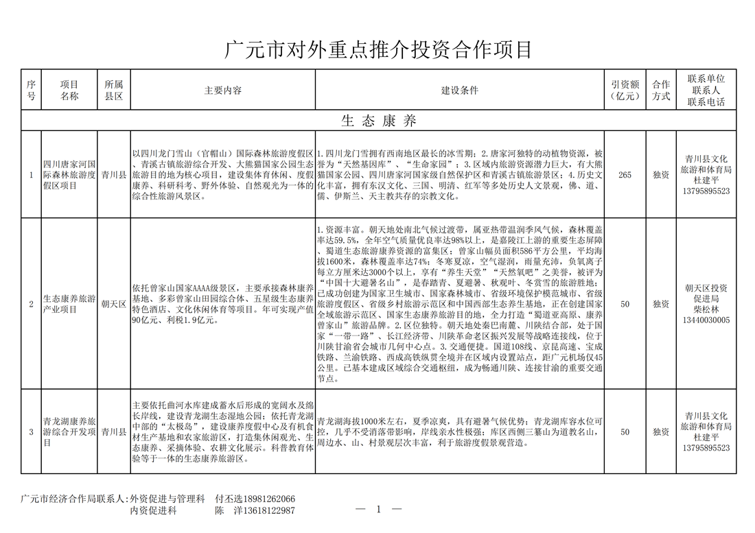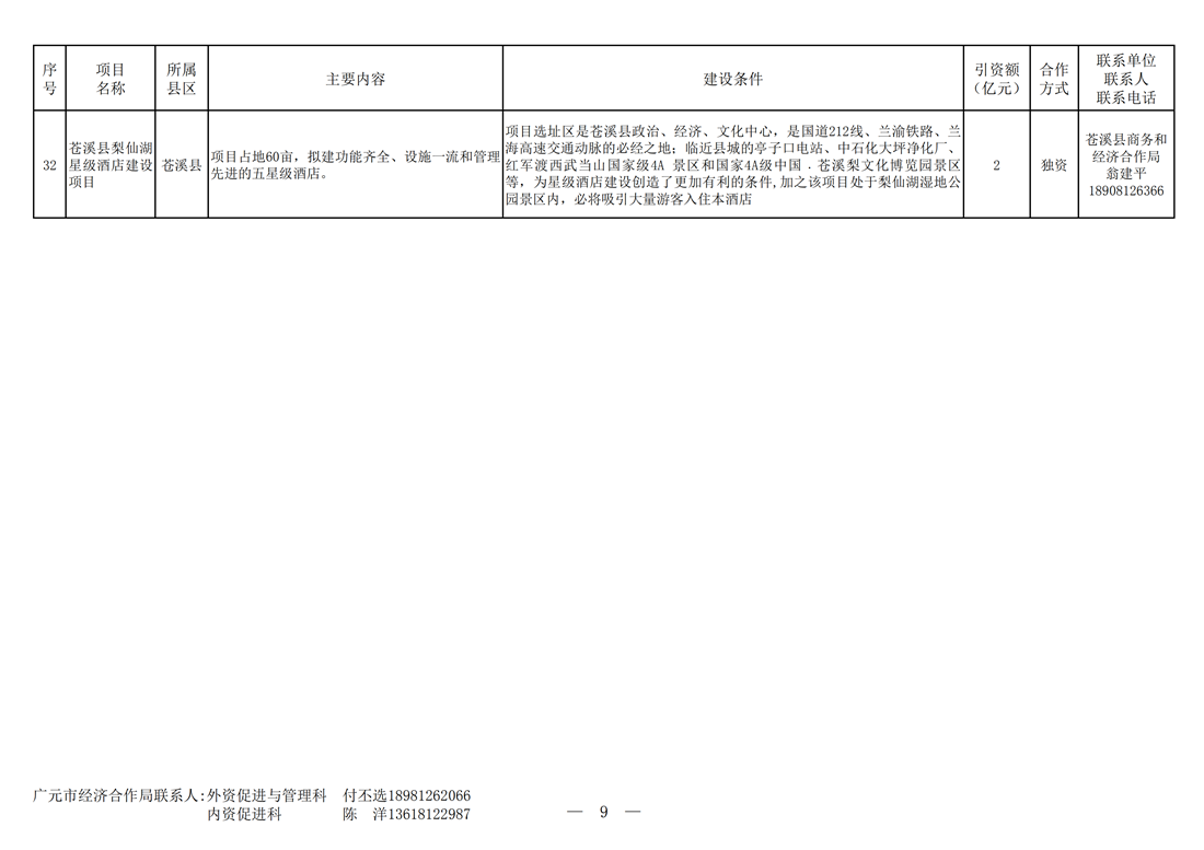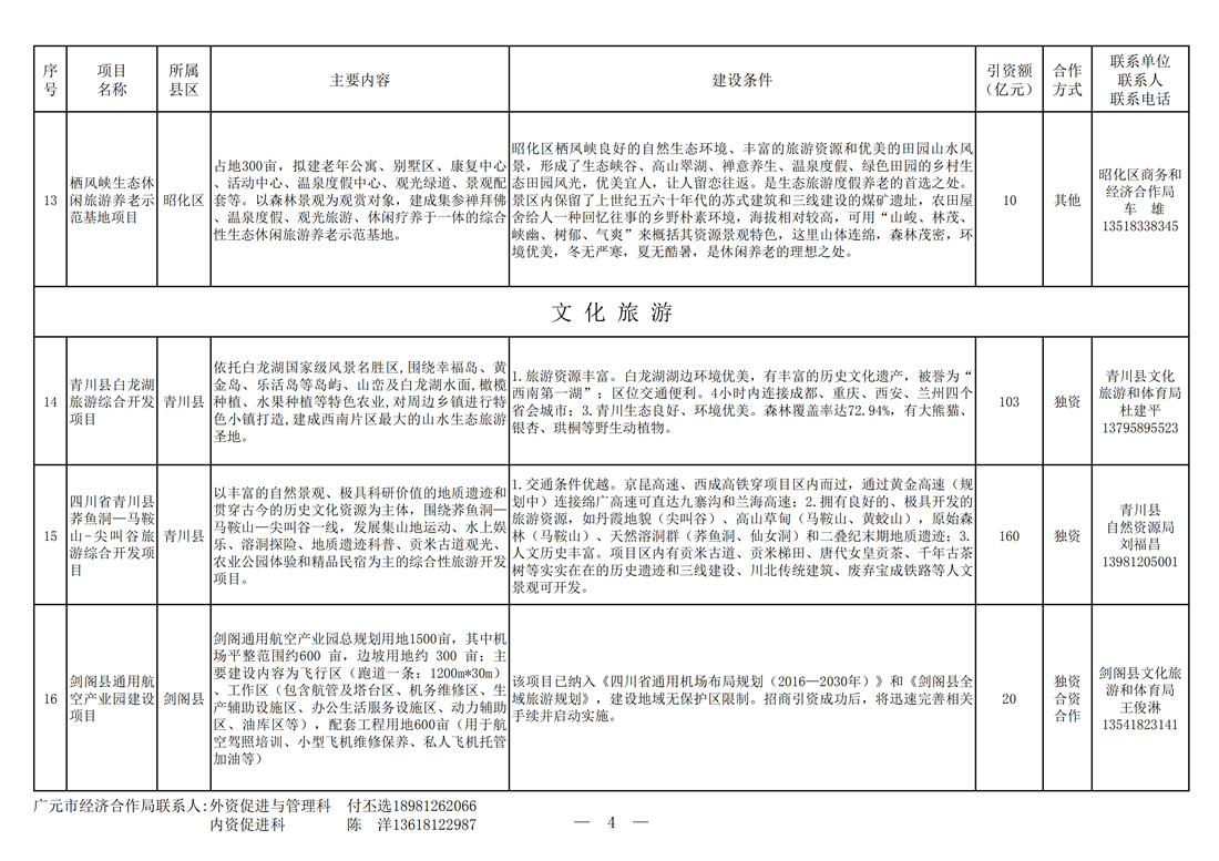 广元市对外重点推介投资合作项目—现代服务业