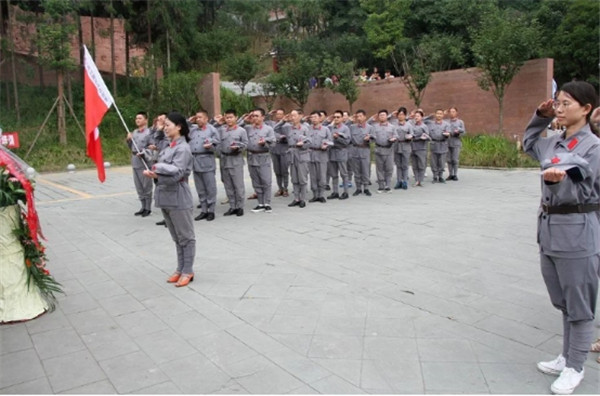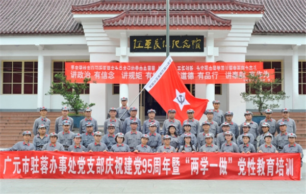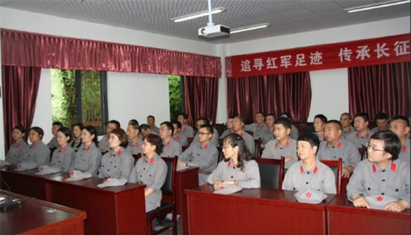 在邛崃红色教育基地,全体党员身着红军服,通过交接队旗、重温入党誓词、向革命先烈敬献花篮、观看《红军在邛崃》影片、党员代表谈体会、重走红军路、参观红军纪念馆等丰富多样的形式,深切缅怀革命先烈的丰功伟绩。