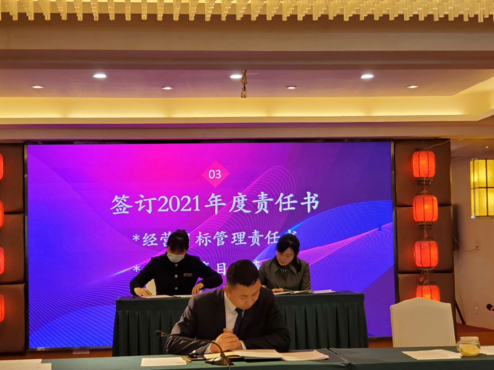 会上,全体员工深入学习了宾馆与广元驻蓉办签订的2021年度目标考核任务。为了更好明确责任,落实考核目标,总经理与各分管部门负责人签订了2021年经营目标管理责任书、安全生产目标管理责任书。