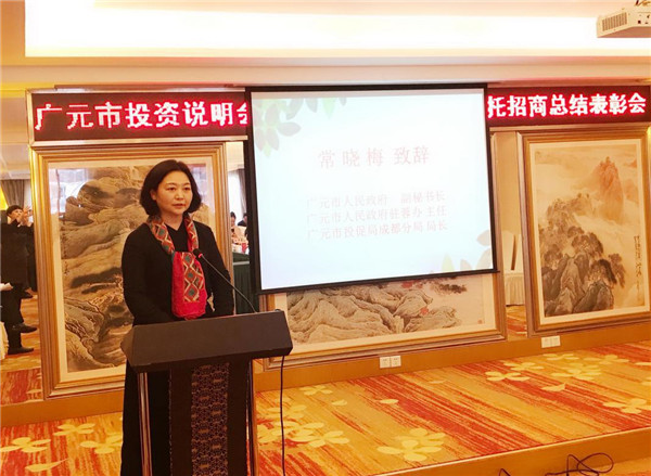 (图为:广元市政府副秘书长、市政府驻成都办事处主任、市投资促进局成都分局局长常晓梅致辞)