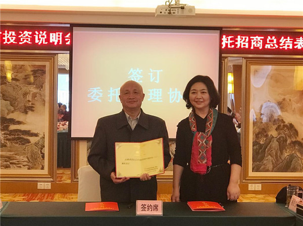 (图为:市政府副秘书长常晓梅与成都广元商会秘书长杨发东做委托招商展示签约)