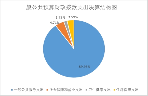 2020年一般公共预算财政拨款支出648.54万元,主要用于以下方面:一般公共服务(类)支出583.34万元,占89.95%;社会保障和就业(类)支出30.57万元,占4.71%;卫生健康支出11.37万元,占1.75%;住房保障支出23.26万元,占3.59%。