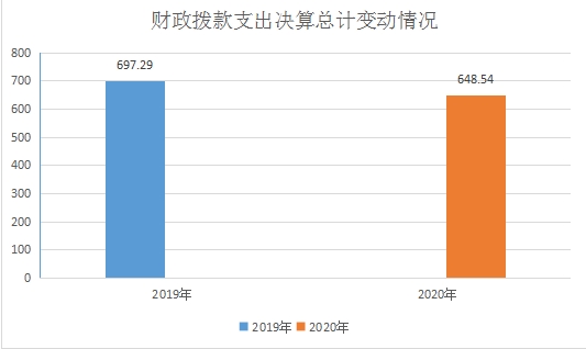 2020年财政拨款收、支总计648.54万元。与2019年相比,财政拨款收、支总计减少48.75万元,下降7%。主要变动原因:一是人员减少;二是严格落实过“紧日子”要求,压减机关工作经费,降低机关运行成本。