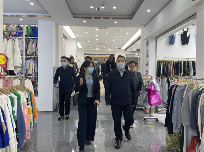 杨海生一行实地走访了荷花池第十四交易区、大成市场、宏正市场等服装经营场所,现场了解了荷花池第十四交易区的基本情况、运营模式和存在困难。