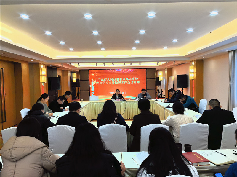 12月28日,广元驻蓉办召开全体职工会议,专题传达学习市委八届八次全会和市委经济工作会议精神,研究部署贯彻落实措施。市政府副秘书长、驻蓉办主任徐涛主持会议并讲话。驻蓉办全体干部及代管企业负责人共30余人参会。