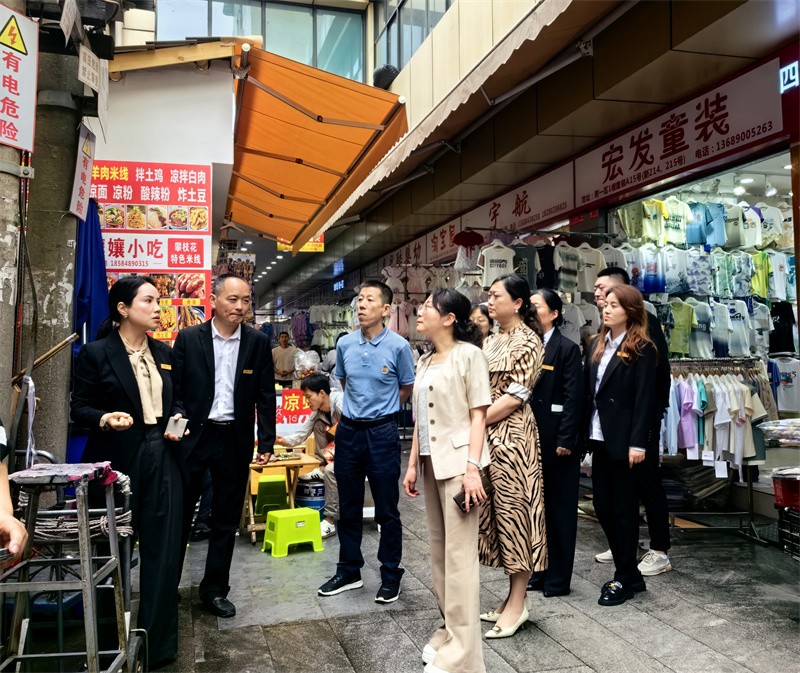 徐涛一行走进荷花池第十四区市场区、库房区、保卫室及职工食堂等区域,查看各项安全设施设备,详细了解市场日常工作管理情况,对广荷物业在优环境、稳经济、促发展、保安全等方面取得的工作成效和工作亮点给予充分肯定。
