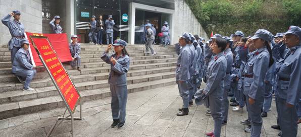 图为:参训学员在井冈山革命烈士陵园重温入党誓词(中共广元市驻蓉流动党员委员会书记、市驻蓉办副主任、市投促局成都分局副局长徐涛领誓)。
