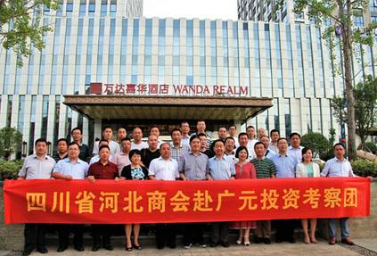 (图为:广元市人民政府市长邹自景、四川省投促局副巡视员张树华等领导与四川省河北商会赴广元投资考察团队合影留念)