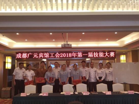 9月19日下午,成都广元宾馆工会在六楼大会议室举行了第一届技能大赛。技能大赛比赛项目有:中式铺床、中餐宴会摆台、仪容仪表。