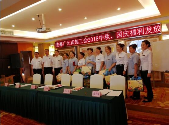 技能大赛后成都广元宾馆工会给全体员工送上了2018中秋、国庆双节的慰问。