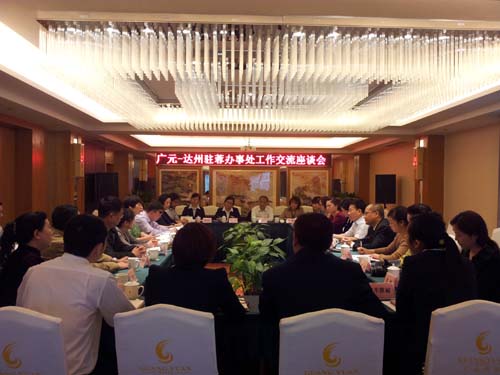 4月23日,广元市人民政府驻成都办事处、达州市人民政府驻成都办事处在成都广元宾馆六楼会议室召开工作交流座谈会。会议就招商引资、政务服务、信访维稳、基层组织建设、国有资产管理等驻外机构职能工作开展情况和发展方向作了深入探讨。