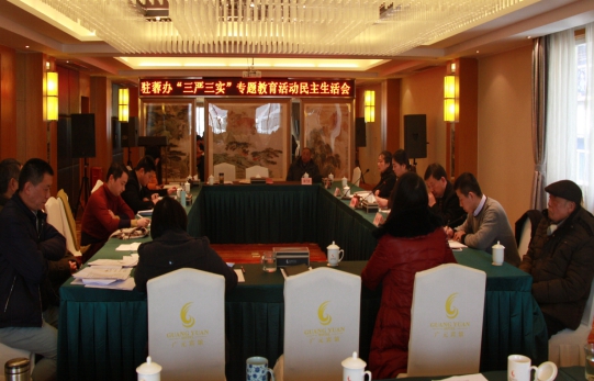 1月25日,驻蓉办领导班子召开了“三严三实”专题民主生活会。市政府副秘书长、驻蓉办主任、支部书记常晓梅主持了会议并代表班子作了对照检查,副主任杨旭、徐涛、滕显利参加会议。驻蓉办全体党员和部分离退休老党员代表列席了会议。