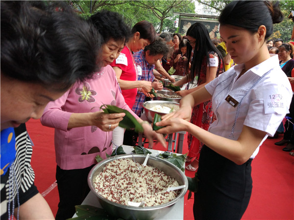 活动现场,首先举行了丰富多彩的文艺表演,由营门口路社区营欣艺术文化中心合唱团、社区舞蹈队、小天鹅幼儿园等节目先后上演,成都广元宾馆职工代表广元驻蓉办参加了演出,并赢得了社区群众阵阵掌声,整个活动现场欢声笑语、其乐融融。随后进行的包粽子比赛将整个“粽子王争霸赛”活动推向了高潮。参赛选手们各自施展自己家传绝活,动作熟练而麻利,装料、包粽叶、扎线,一气呵成,基本都是不到一分钟就可以包好一只粽子。经过激烈角逐,比赛最终选出一、二、三等奖,广元驻蓉办选派的张玉莲在本次“粽子王争霸赛”勇夺二等奖。广元驻蓉办为本次活动提供了糯米、箬竹叶、绿豆、棉线等包粽子材料。