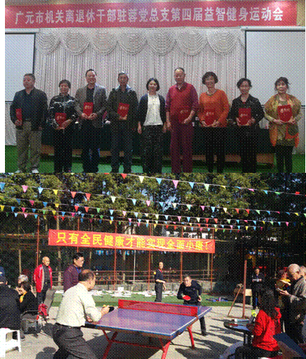 为丰富和活跃广元市驻蓉离退休职工的文体生活, 11月11日,中共广元市驻蓉流动党委直属机关离退休总支组织210余名驻蓉退休党员,在成都三圣乡红砂村金桂园举办了第四届益智健身运动会。市政府副秘书长、驻蓉办主任常晓梅,副主任杨旭出席本次活动。