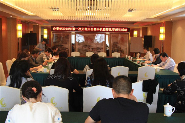4月27日,我办党支部2018年第一次支部大会暨广元市驻蓉办“记录劳动之美,发现最美职工”主题手机摄影比赛颁奖活动在广元宾馆六楼大会议室举行。市政府副秘书长、驻蓉办主任、党支部书记常晓梅出席会议,副主任杨旭、滕显利及全体职工参加会议。