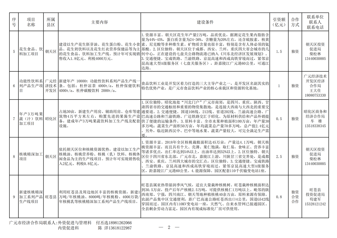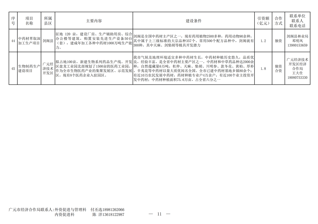 广元市对外重点推介投资合作项目—新型工业