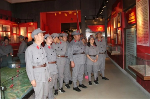 在邛崃红色教育基地,全体党员身着红军服,通过交接队旗、重温入党誓词、向革命先烈敬献花篮、观看《红军在邛崃》影片、党员代表谈体会、重走红军路、参观红军纪念馆等丰富多样的形式,深切缅怀革命先烈的丰功伟绩。
