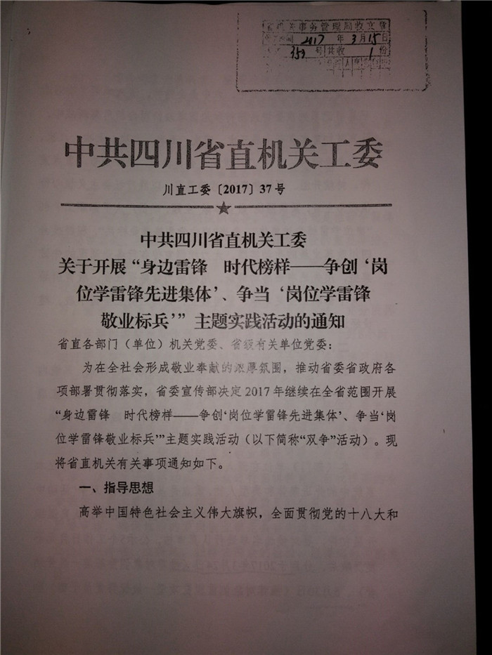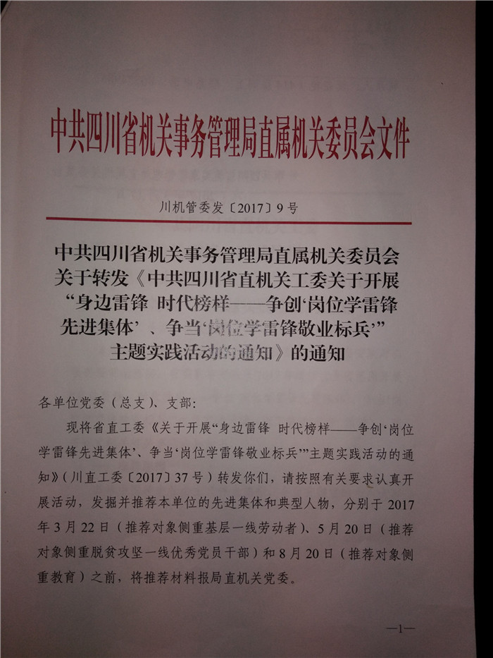 关于转发《中共四川省直机关工委关于开展“身边雷锋 时代榜样”——岗位学雷锋先进集体”、争当“岗位学雷锋敬业标兵”主题实践活动的通知”的通知