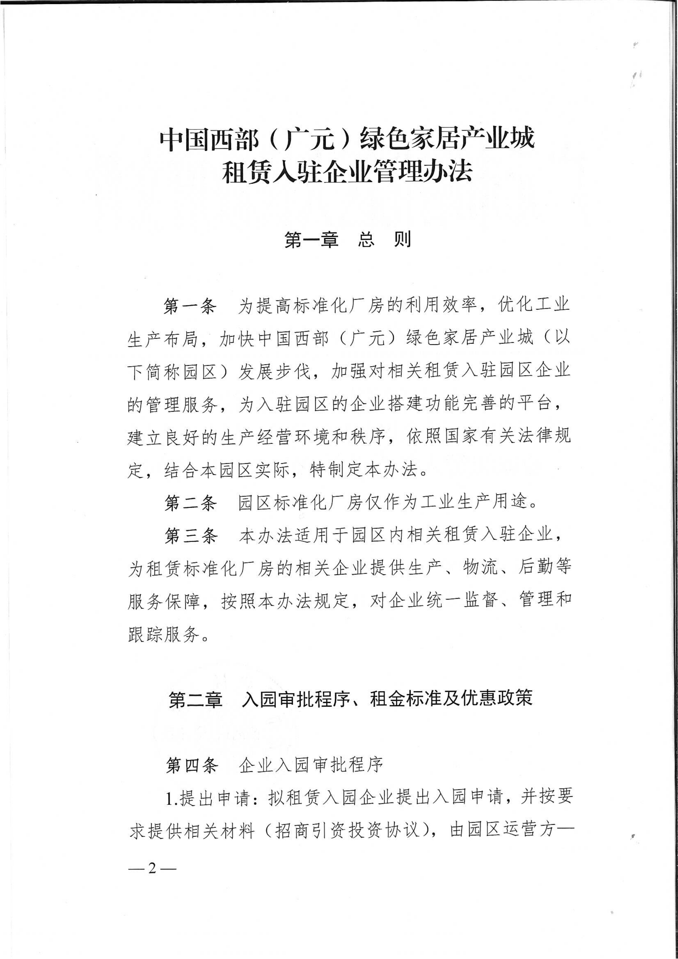 关于印发《中国西部(广元)绿色家居产业城租赁入驻企业管理办法》的通知