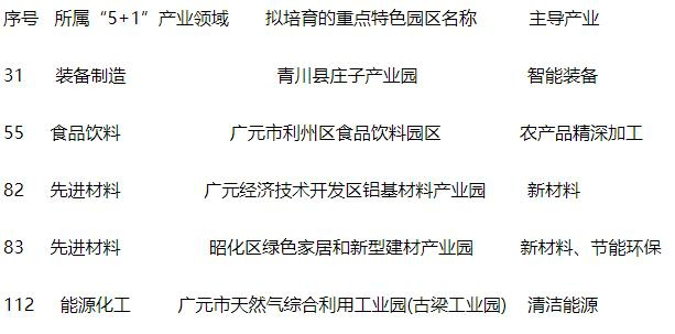 3月2日,四川省政府网站公布了《四川省“5+1”重点特色园区培育发展三年行动计划(2021—2023年)》。到2023年底,全省将建设100个左右贯彻新发展理念、优势突出、创新功能完备的重点特色园区,广元市有5个产业园区入选。