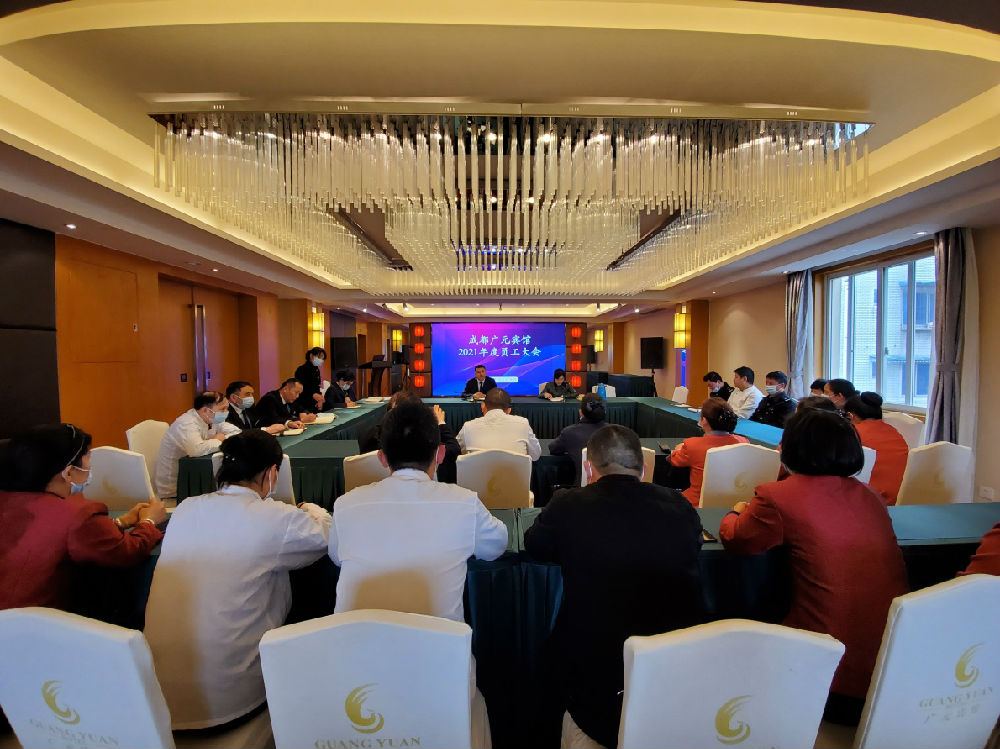 3月9日,成都广元宾馆召开了2021年工作安排会,参会人员有宾馆总经理郑庆国、各部门负责人、岗位员工等30余人。会议由宾馆副总经理常莉云主持。