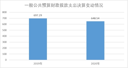 2020年财政拨款收、支总计648.54万元。与2019年相比,财政拨款收、支总计减少48.75万元,下降7%。主要变动原因:一是人员减少;二是严格落实过“紧日子”要求,压减机关工作经费,降低机关运行成本。