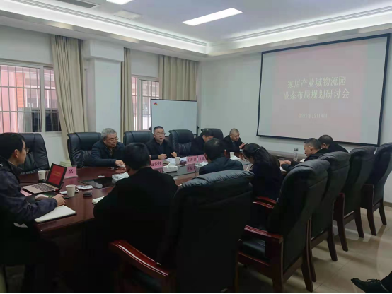 图为听取原辅材交易及仓储物流中心修建及布局情况