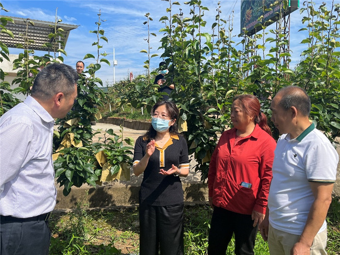 徐涛一行先后前往红江村特色产业黄金梨园、中药材种植园、羊肚菌种植基地等地,详细询问了解村特色产业现状、取得的成效以及存在的困难与问题。