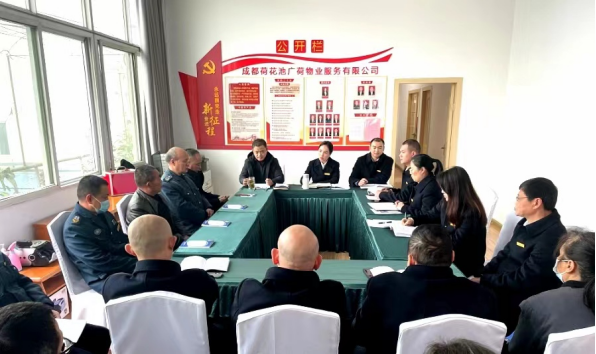 2月7日,成都荷花池广荷物业管理有限公司召开全体职工大会,通报近期工作情况,安排部署2023年重点工作。会议由董事长余秋兰主持,公司全体干部职工共20余人参会。