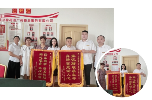 广荷物业的各项工作得到了商户们的认可及肯定,商户及个私协会代表相继送来锦旗“排忧解难求生存,真情实意动人心”、“情系商家,鼎力相助,贴心服务,共建和谐”、“服务放首位,高效暖人心”。