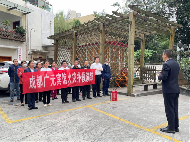 在第32个全国消防日来临之际,为进一步普及消防安全知识,增强消防安全意识,提高员工安全技能,11月8日,成都广元宾馆组织各部门约30余人开展火灾扑救实战演练及消防知识培训。