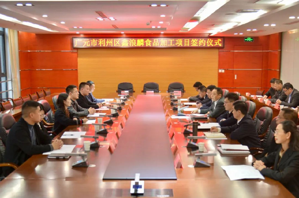 签约仪式上,利州区副区长向庚代表区人民政府分别与“利州红梨”精深加工全产业链项目、鑫浪麟食品加工项目负责人签订协议。