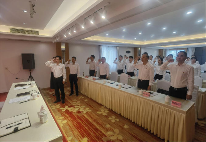 会议在《没有共产党就没有新中国》的旋律中拉开帷幕,嘹亮的歌声表达了大家对党的无限热爱和坚定信念。随后在庄严的党旗下,全体党员高举右拳,重温入党誓词。