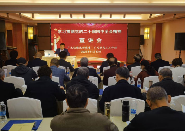11月13日,广元驻蓉流动党委、农民工工作站组织召开学习贯彻党的二十届四中全会精神宣讲会,广元各县区、成都广元商会及机关离退休的100余名驻蓉流动党员、农名工代表齐聚一堂,以“理论学习+产业赋能”双轮驱动,推动党性修养与反哺家乡能力同提升。广元驻蓉流动党委副书记、市政府驻成都办事处综合信息科科长赵耀参加宣讲会。会议由成都广元商会党总支书记、常务副会长冯元文主持。
